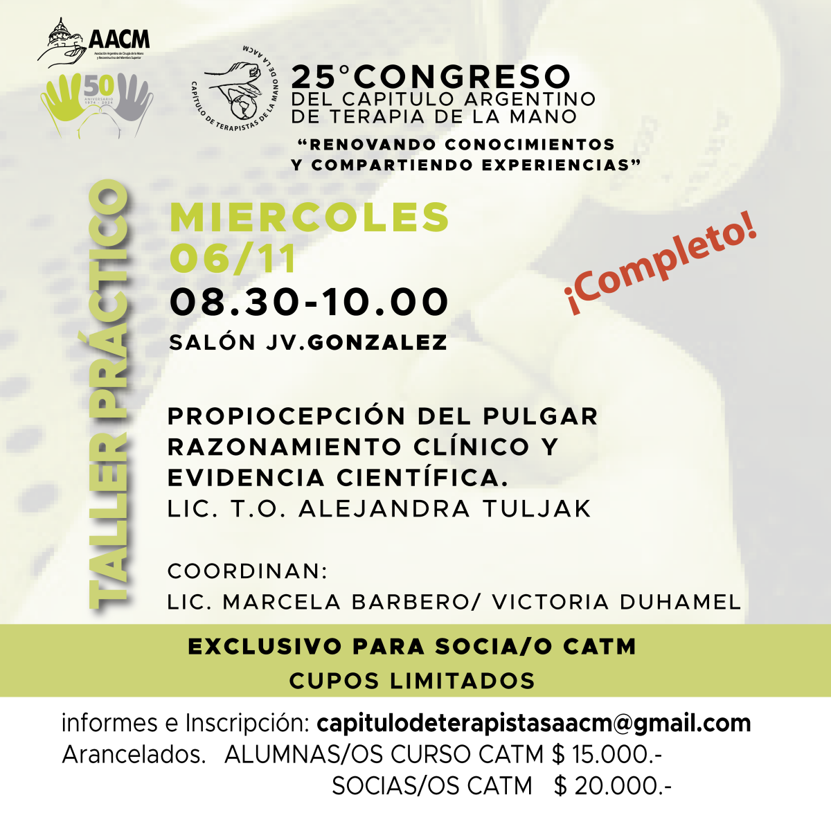 Inscripción hasta 28/10 CUPOS LIMITADOS (EXCLUSIVO SOCIAS/OS)
